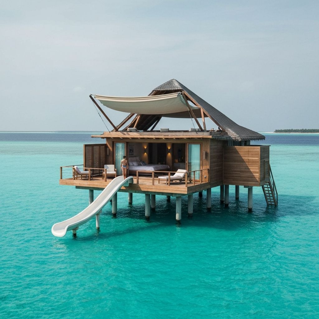 Soneva Jani is not a resort — it is a philosophy made manifest in water and wood. Nestled within the turquoise embrace of the Noonu Atoll, its overwater villas glide between two uninhabited islands, each room equipped with a retractable roof that dissolves the boundary between your bed and the Milky Way. Here, the language of barefoot luxury reaches its purest expression. The lagoon is not a backdrop; it is a living presence that changes hue with every passing hour — sapphire at dawn, jade at noon, obsidian at midnight. Guests arrive at private water villas with private slides into the ocean, outdoor cinemas on the water, and butlers who read preferences with near-psychic precision.